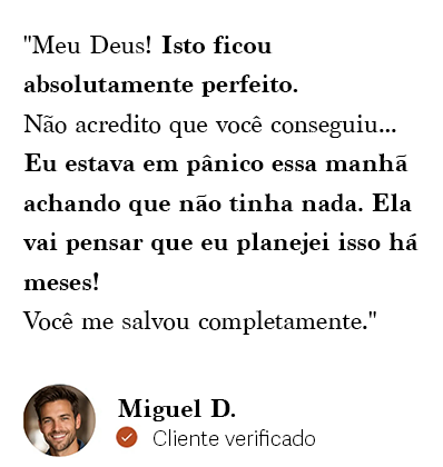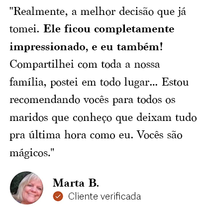 Cada música é escrita do zero usando SUAS palavras e SUAS memórias. Isso não é um modelo — é uma lembrança profundamente pessoal que captura seu relacionamento em uma canção. Muitos de nossos clientes nos dizem que isso lhes trouxe lágrimas aos olhos.